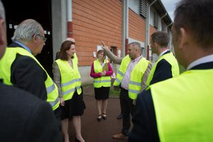 A látogatás az osztrák tulajdonú Tondach Magyarország Zrt-nél folytatódott, ahol csatlakozott a vendégekhez a Békés Megyei Kereskedelmi és Iparkamara elnöke és titkára dr. Orosz Tivadar és Tóth Zsolt. Megismerkedtek a cég működésével, jelenlegi helyzetével, és rész vettek egy üzembejáráson is.
