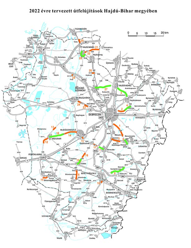 A 4 és 5 számjegyű utak TOP Plusz program keretében megvalósítandó fejlesztéseiről február 4-i ülésén zárt körben tárgyalt a Hajdú-Bihar Megyei Közgyűlés. A felújítandó útszakaszok hossza mintegy 50 km. Az irányító hatóság által hozott határozat értelmében az érintett szakaszok a következők: