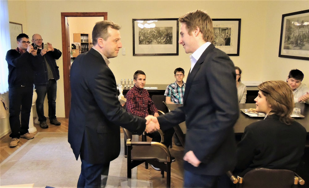 2017.01.24. Hivatalában fogadta Ribányi József a 2016-os kecskeméti diákolimpián dobogós helyezést elért fiatal Tolna megyei birkózókat, akik nem tudtak részt venni a tavaly decemberben megrendezett diáksportolói gálán.