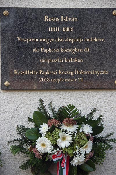 A táblát, mely a papkeszi Szent Imre kápolna falára került, a helyi önkormányzat készíttette a megye első alispánja emlékére, aki a 19. században sokáig Papkeszin élt, sáripusztai birtokán.