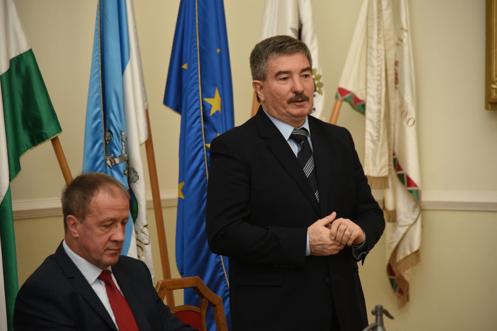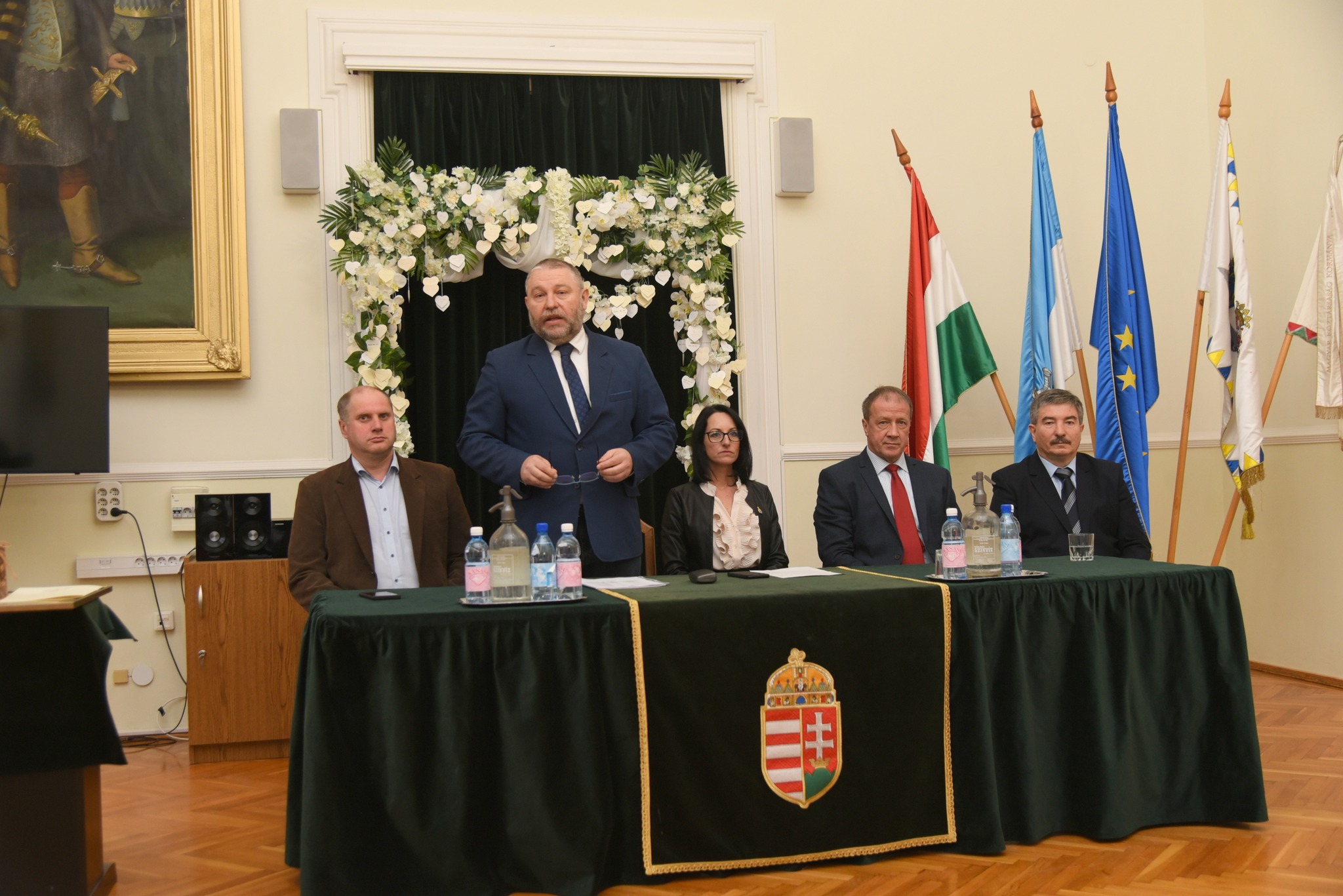 Dr. Csiszár Imre alpolgármester, Szólláth Tibor polgármester, Nagyné Legény Ildikó alpolgármester, Dr. Tiba István országgyűlési képviselő, Pajna Zoltán elnök – vármegyei közgyűlés