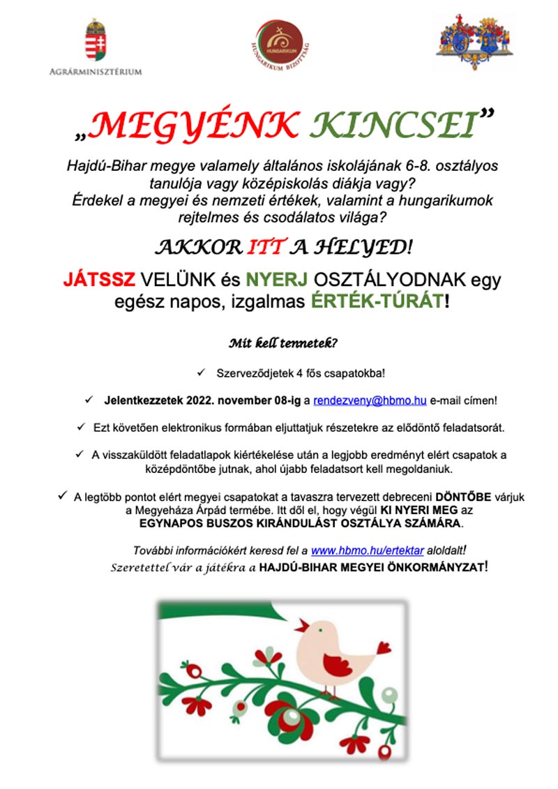 2022.10.24. November 8-ig lehet jelentkezni a Hajdú-Bihar Megyei Önkormányzat „Megyénk kincsei” elnevezésű játékára!