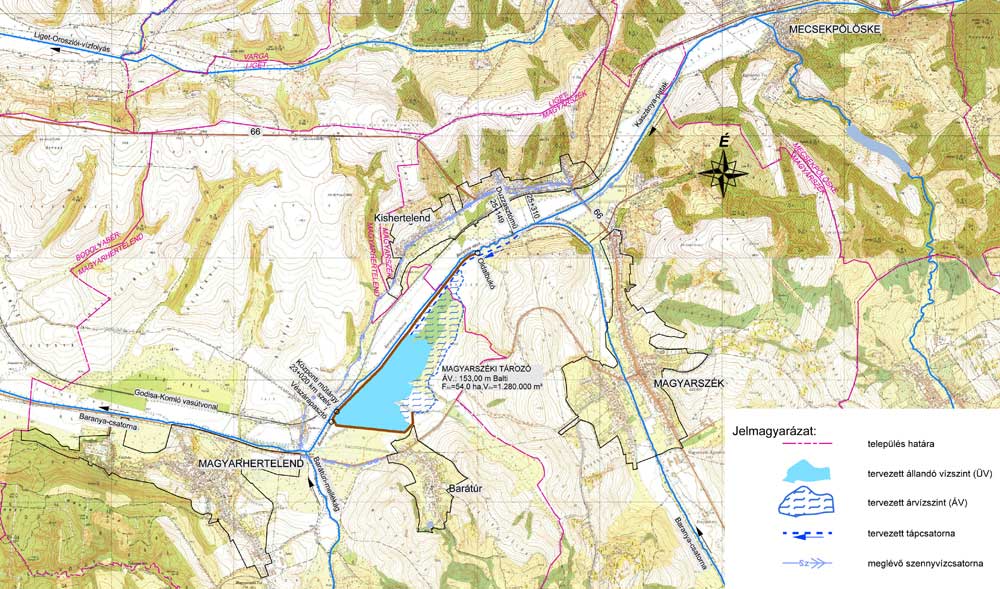 A 2019. október végéig megépülő tározó vízfelülete üzemvízszinten 28 hektár, árvíz esetén 54 hektár nagyságú lesz. A projekt keretében Magyarhertelenden a Baranya-csatorna felső, dombvidéki vízgyűjtőjének lefolyási viszonyait rögzítő vízrajzi mérőállomás is épül.