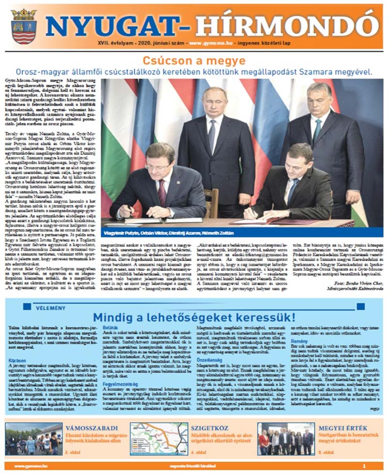 2020.07.08. A Győr-Moson-Sopron Megyei Önkormányzat közéleti lapja 170.000 példánya minden megyei háztartás postaládájába eljut, emellett a megyei önkormányzat honlapján vagy a képre kattintva online is olvasható.