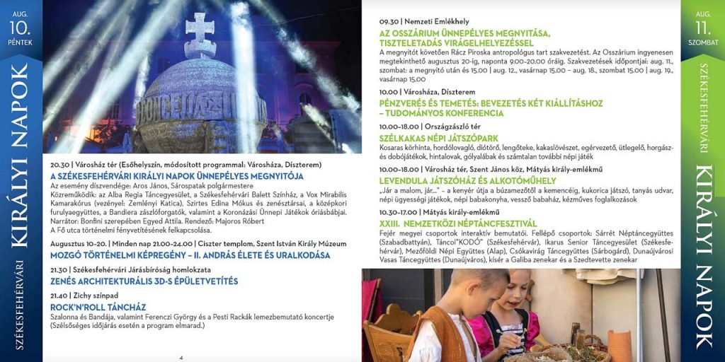 A Városház téri fényjáték és a Fő utca történelmi fényvetítéseinek a felkapcsolásával zárul a megnyitó. A Fő utcán a Képes Krónika ábrái elevenednek meg a falakra vetített képregényben a Ciszterci templom és a Szent István Király Múzeum Rendház homlokzatán, amit Matuz János forgatókönyve alapján Magyarósi Éva grafikus és csapata animált.