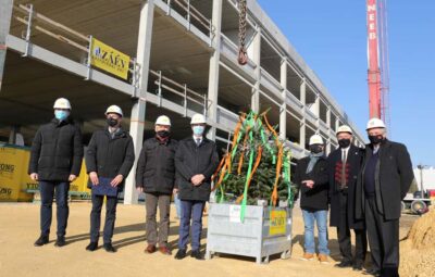 Bokrétaünnep az épülő nagykanizsai sport- és rendezvénycsarnoknál