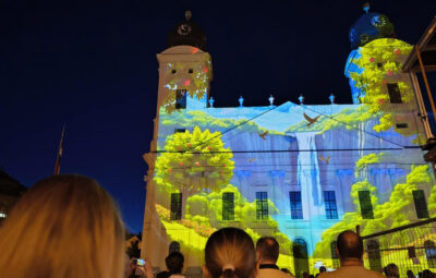 2025.07.17. Hajdú-Bihar Vármegye Önkormányzatának debreceni fényjátéka sok érdeklődőt vonzott a Kossuth térre.