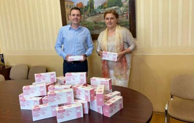 2020.05.25. A kínai Henan tartományból érkezett szájmaszkokat dr. Árvay István polgármester nevében Fehérné dr. Bodó Mariann...