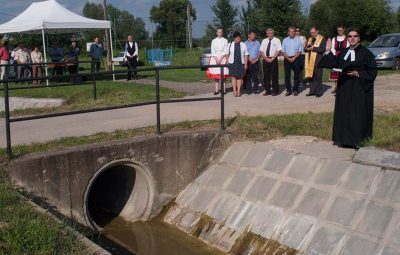 2018.07.04. Betonburkolatot kapott a Kossuth utcai vízelvezető árok a kismányokiak nagy örömére – jelentette be ünnepélyes...