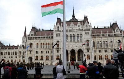 Felvonták, majd félárbócra engedték a nemzeti lobogót a Parlament előtt